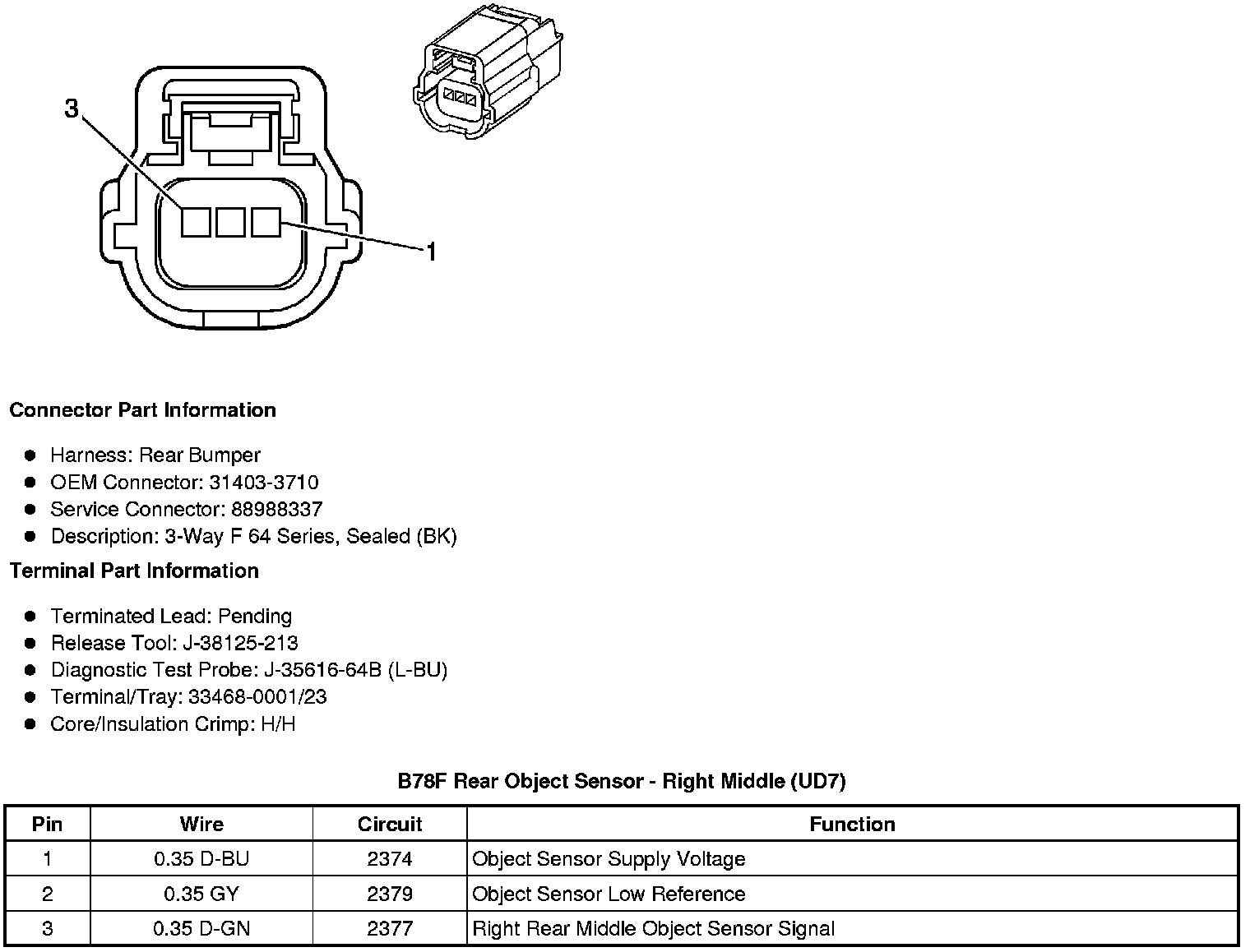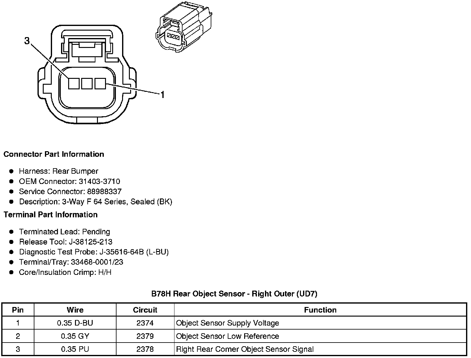 B78H Rear Object Sensor - Right Outer (UD7)