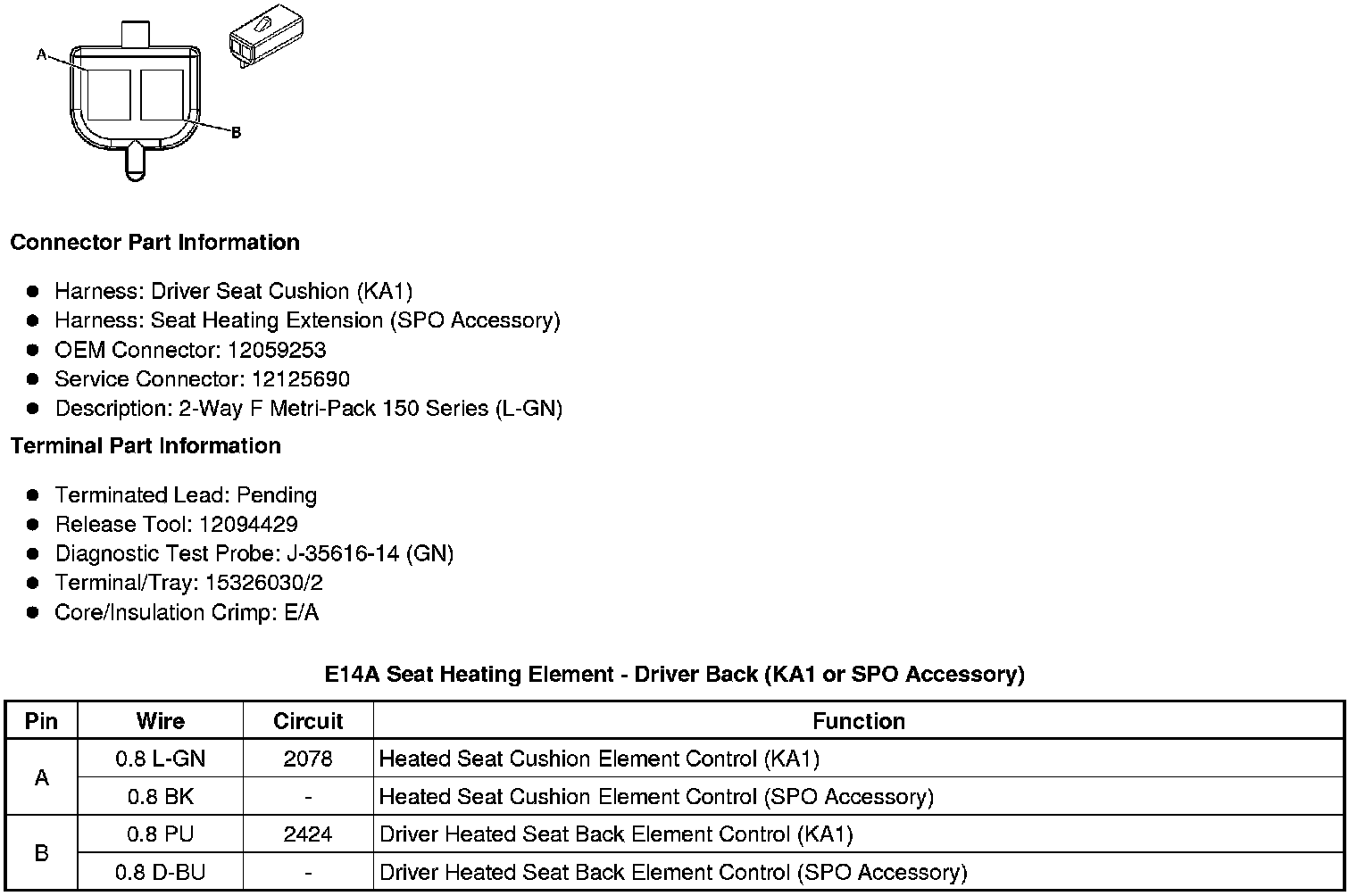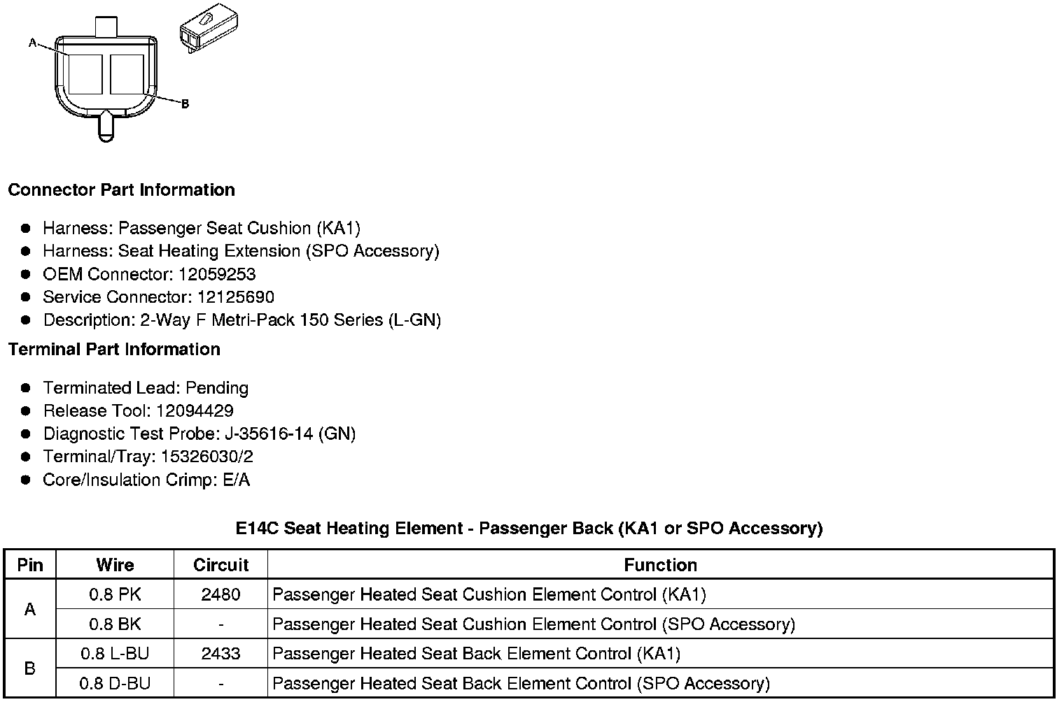 E14C Seat Heating Element - Passenger Back (KA1 or SPO Accessory)