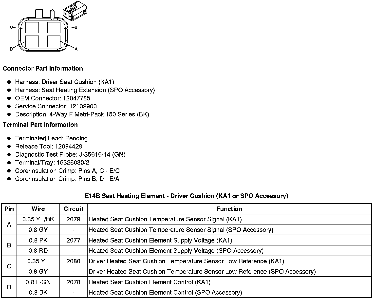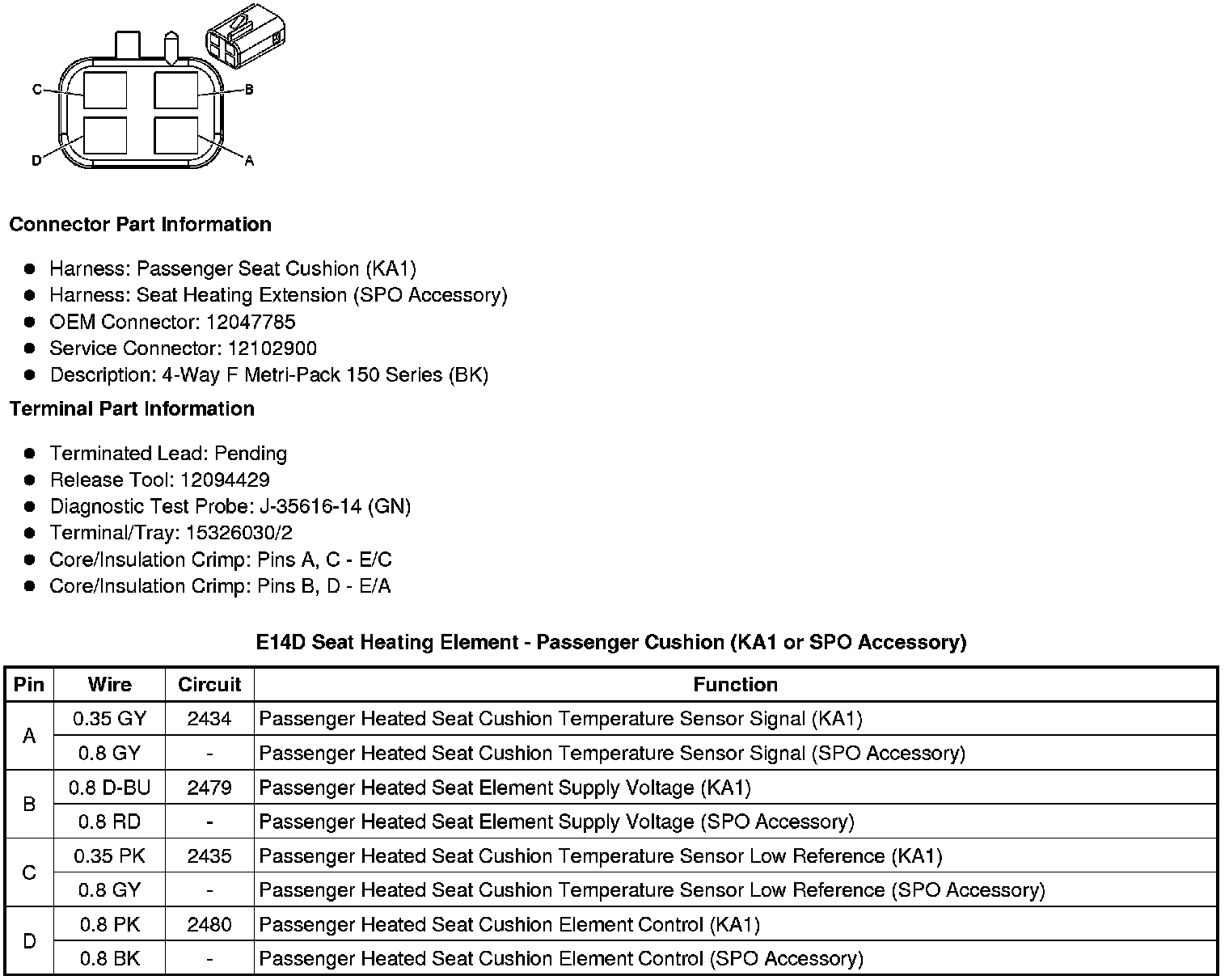 E14D Seat Heating Element - Passenger Cushion (KA1 or SPO Accessory)