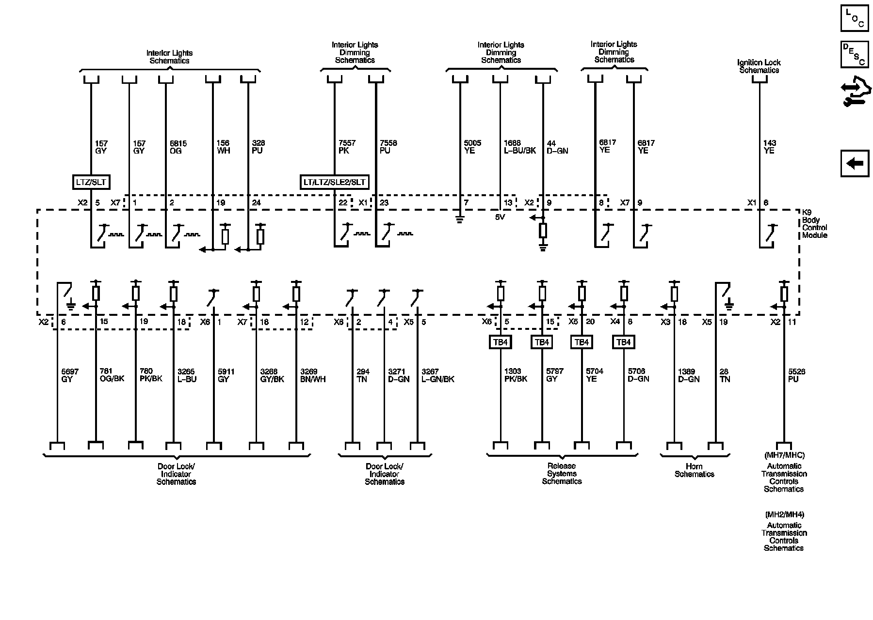 Interior Lights, Door Locks, Brakes, Release Systems, Ignition Lock, and Automatic Transmission References
