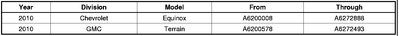Involved are certain 2010 model year Chevrolet Equinox and GMC Terrain vehicles built within these VIN breakpoints: