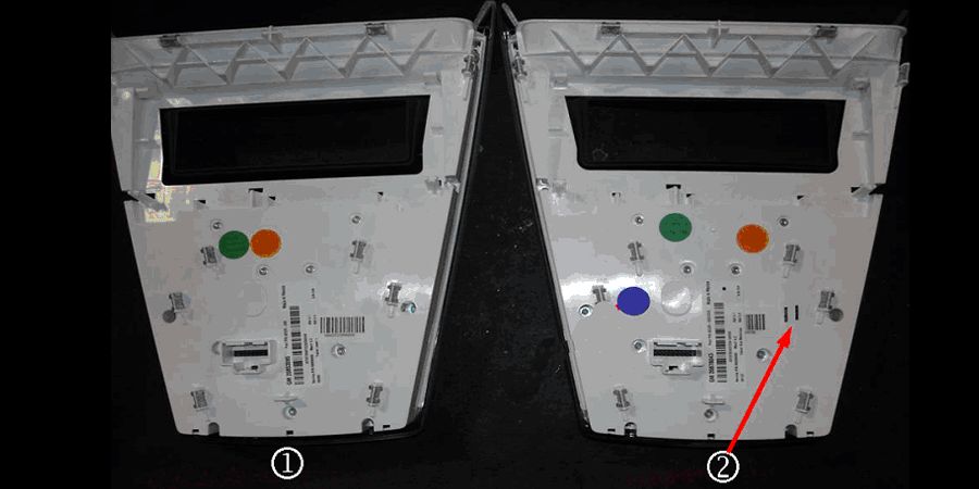 - Second design radio control assemblies (2) are programmable. They have two slots on the backside of the radio control assembly. If the radio control assembly is a second design assembly, proceed to Step 2.
