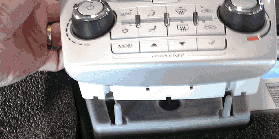 For vehicles without the color touch screen navigation, unsnap and remove the display from the radio control assembly. Do not return the radio display with the radio control assembly.