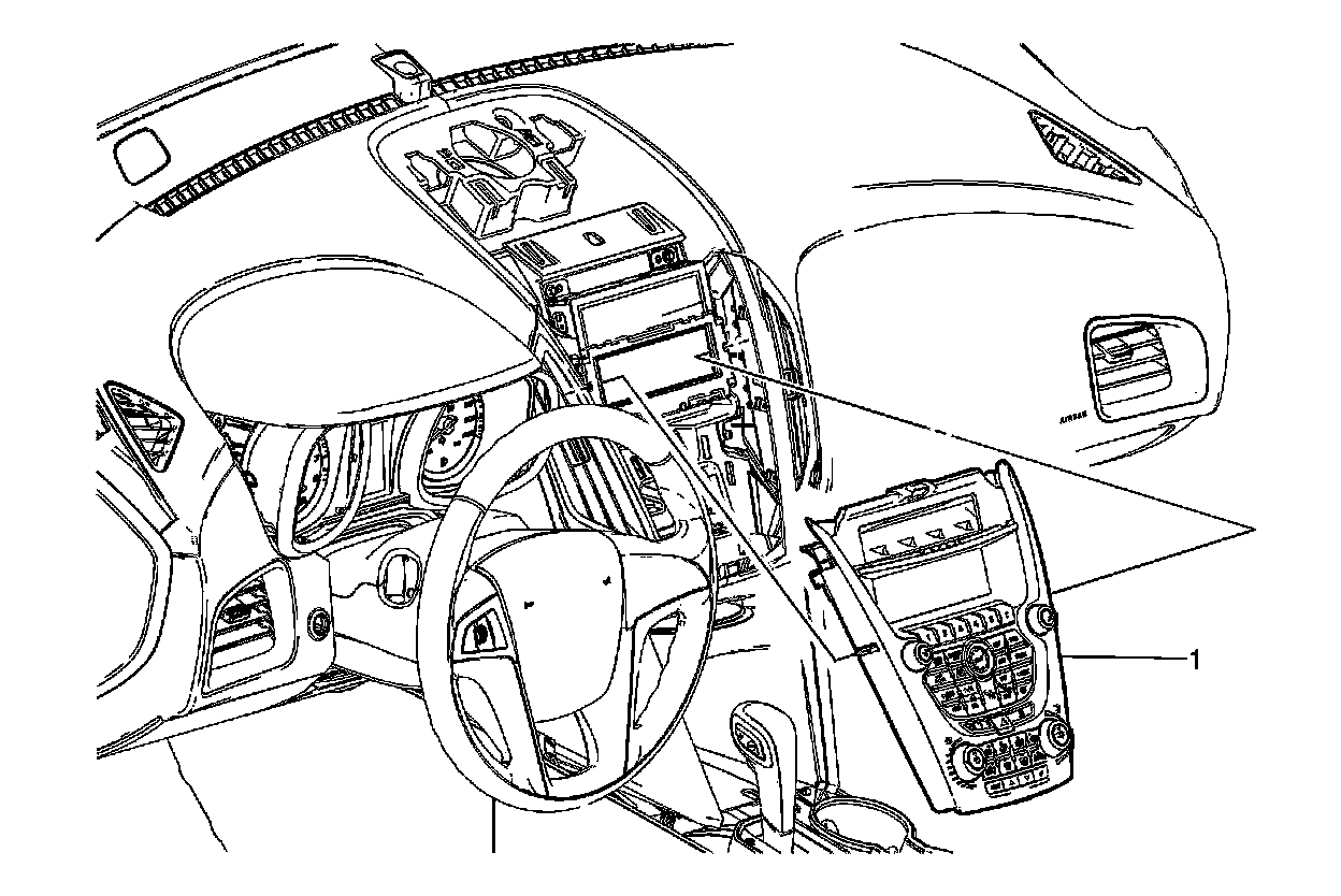2. Remove the radio control assembly (1). Refer to Radio Control Assembly Replacement in SI.