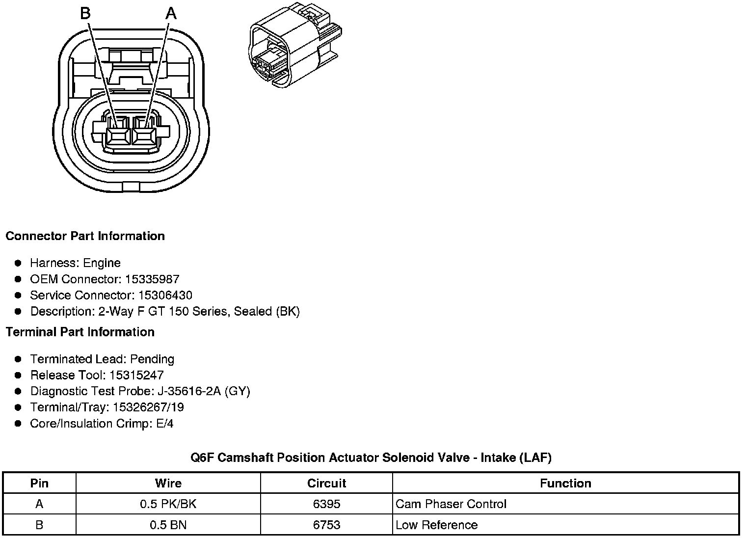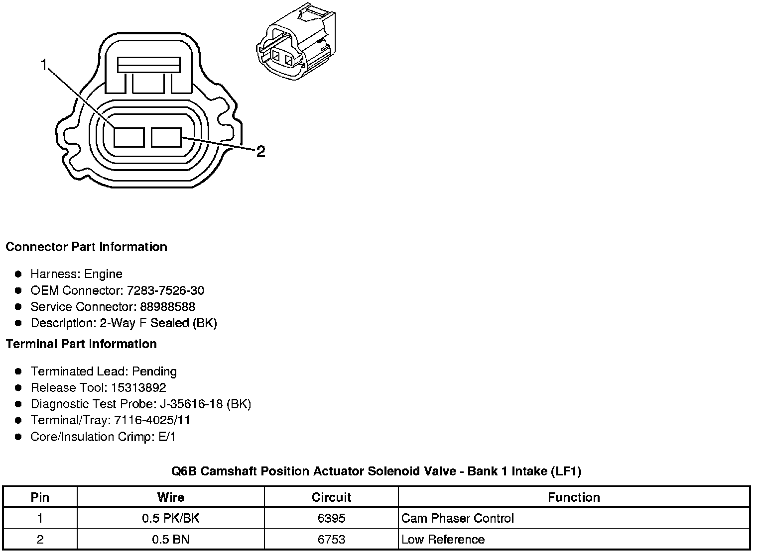 Q6B Camshaft Position Actuator Solenoid Valve - Bank 1 Intake (LF1)