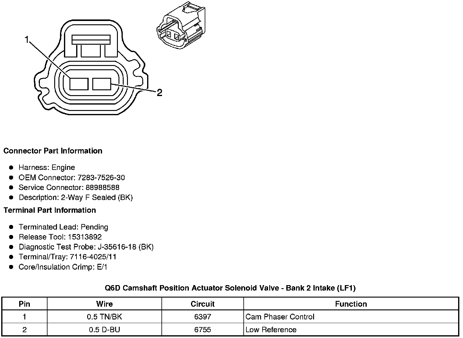 Q6D Camshaft Position Actuator Solenoid Valve - Bank 2 Intake (LF1)