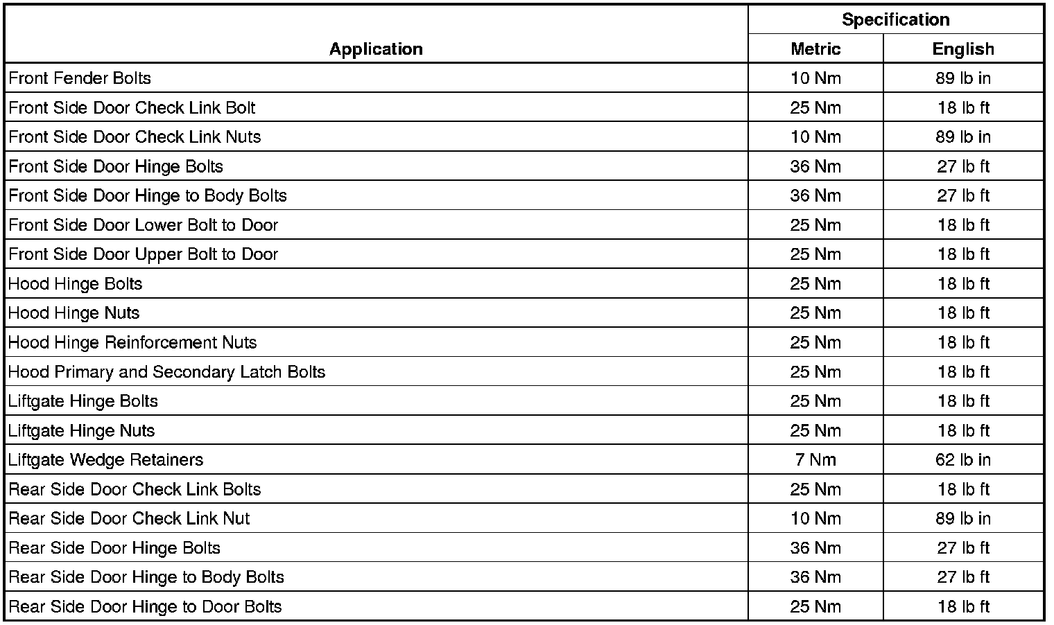 Fastener Tightening Specifications