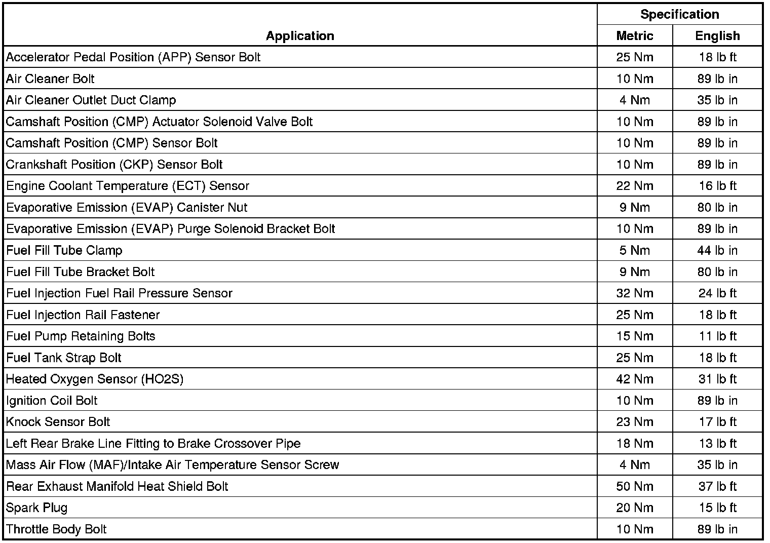 Fastener Tightening Specifications