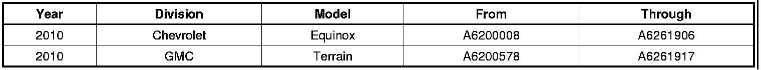 Dealers are to confirm vehicle eligibility prior to beginning repairs by using GMVIS (dealers using WINS) or the Investigate Vehicle History link (dealers using GWM). Not all vehicles within the above breakpoints may be involved.