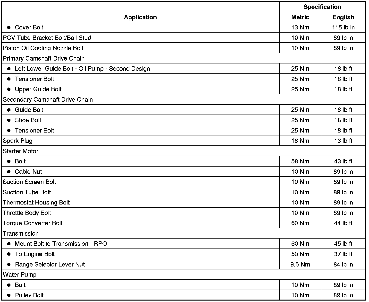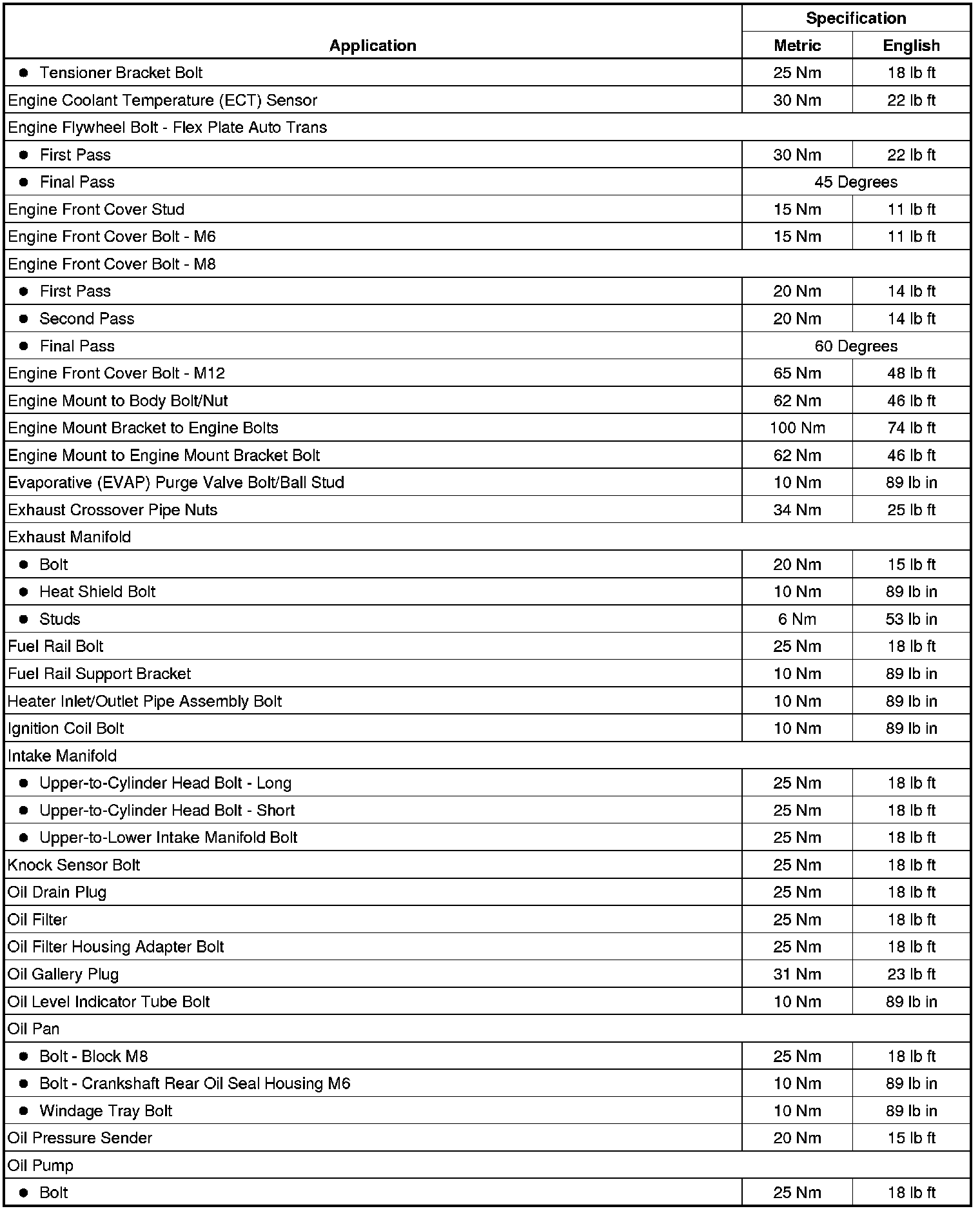 Fastener Tightening Specifications