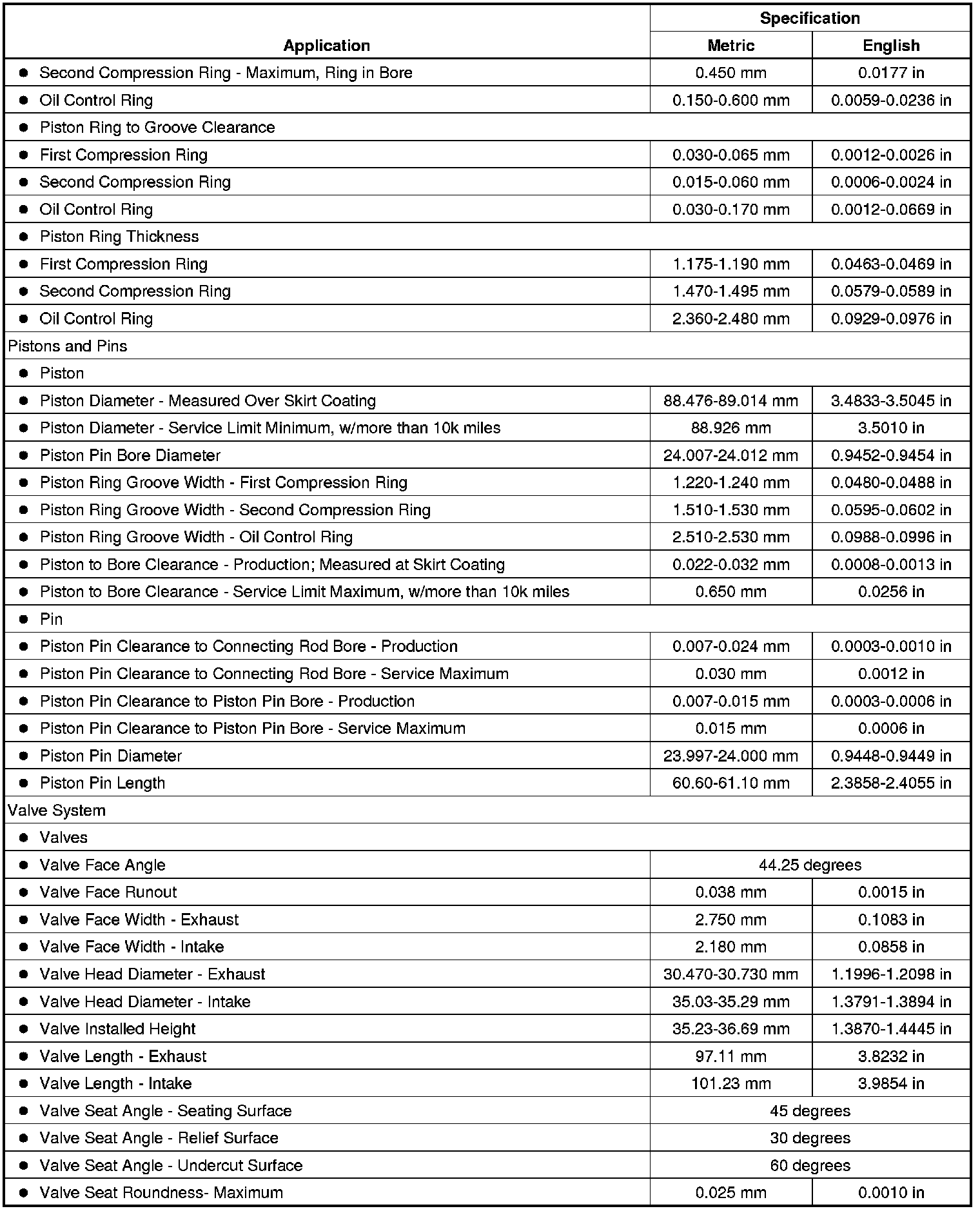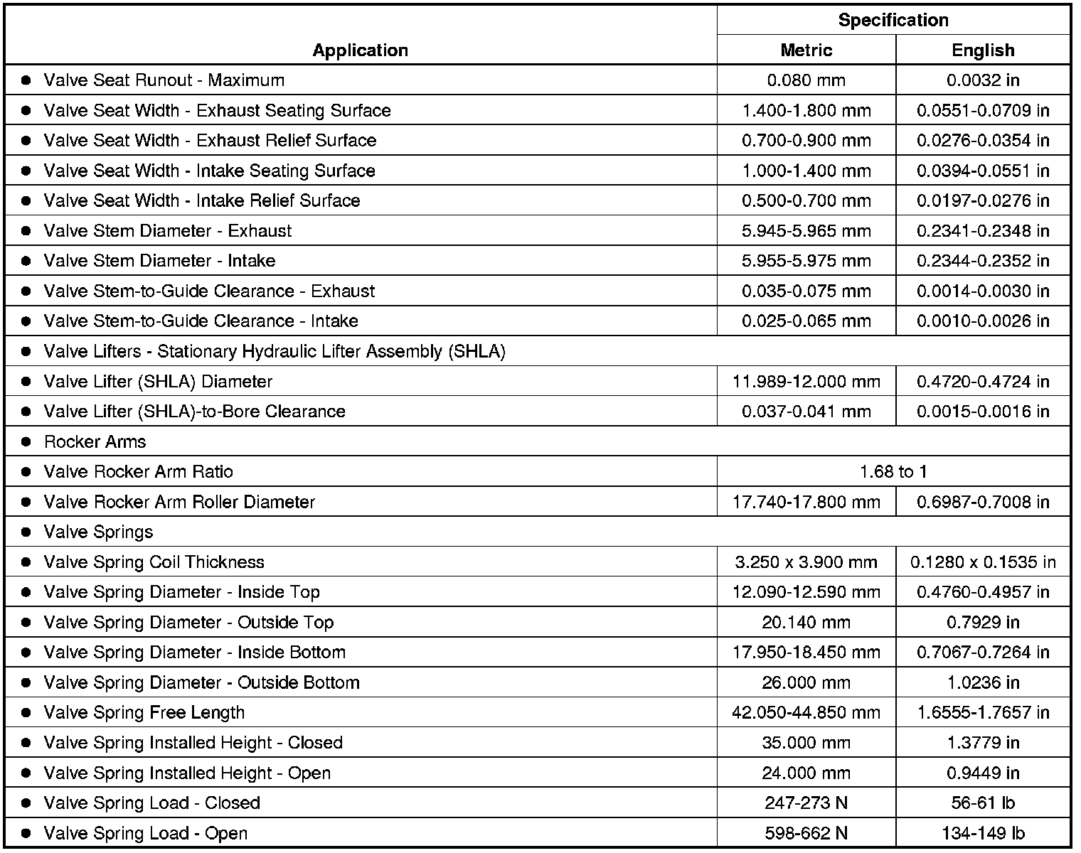Engine Mechanical Specifications (LF1)