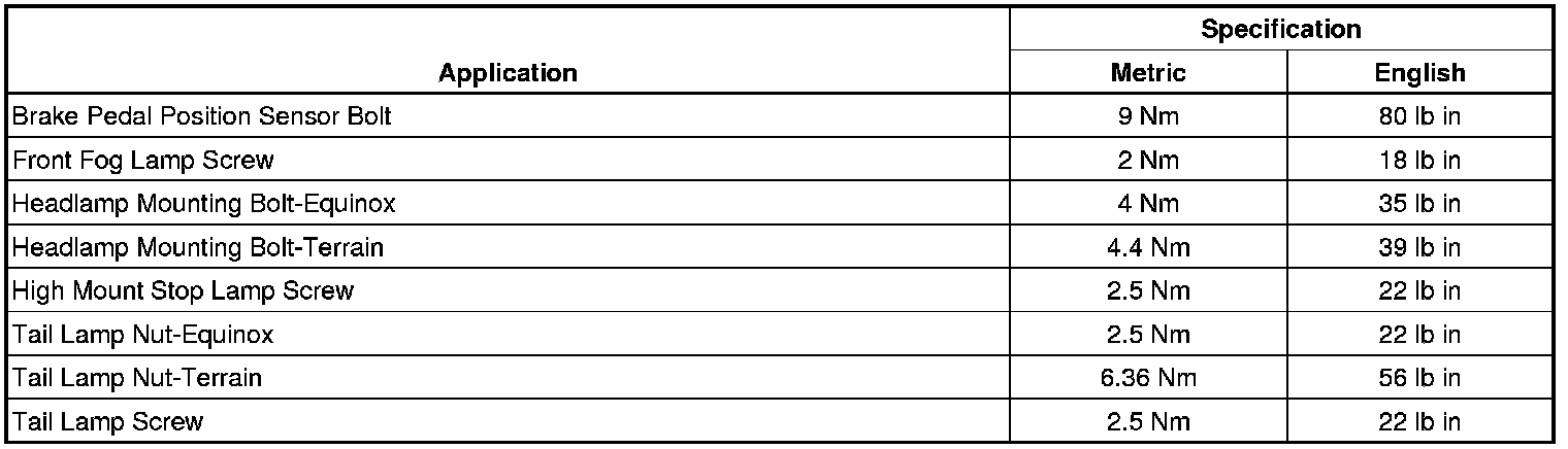 Fastener Tightening Specifications