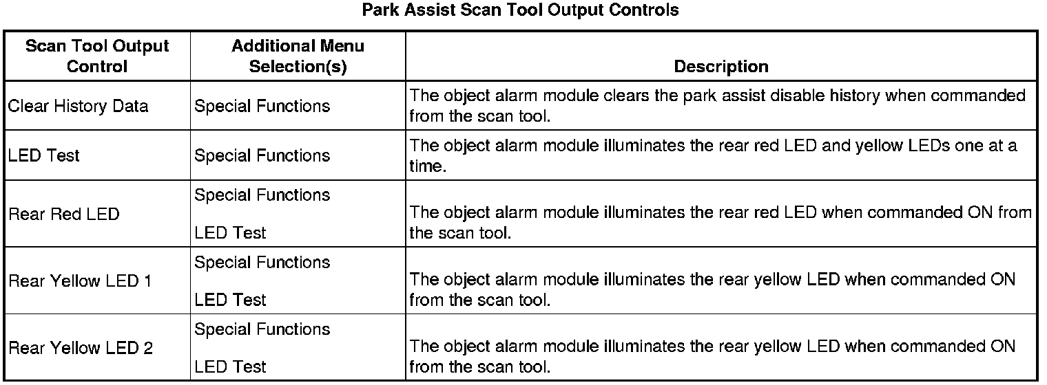 Rear Object Alarm Module Scan Tool Information