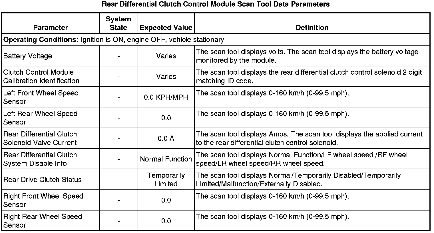 Rear Differential Clutch Control Module Scan Tool Information