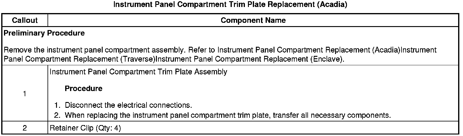 Instrument Panel Compartment Trim Plate Replacement (Acadia)