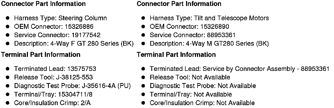 X295 Steering Column Harness to Tilt and Telescope Motors Harness (N38)