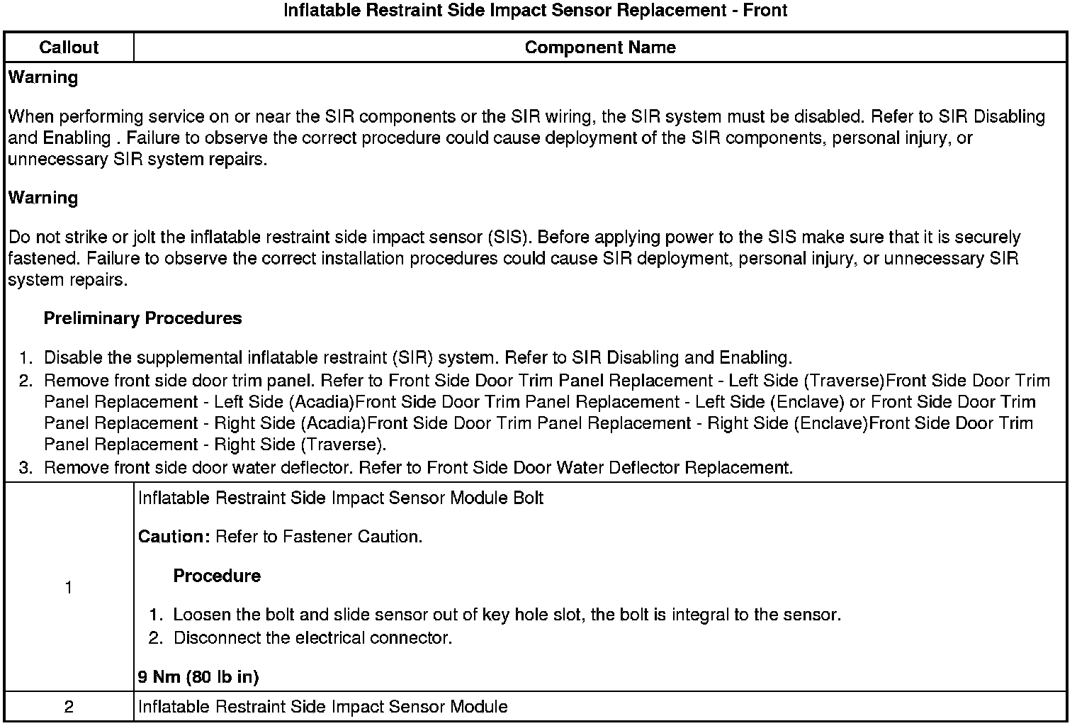 Inflatable Restraint Side Impact Sensor Replacement - Front