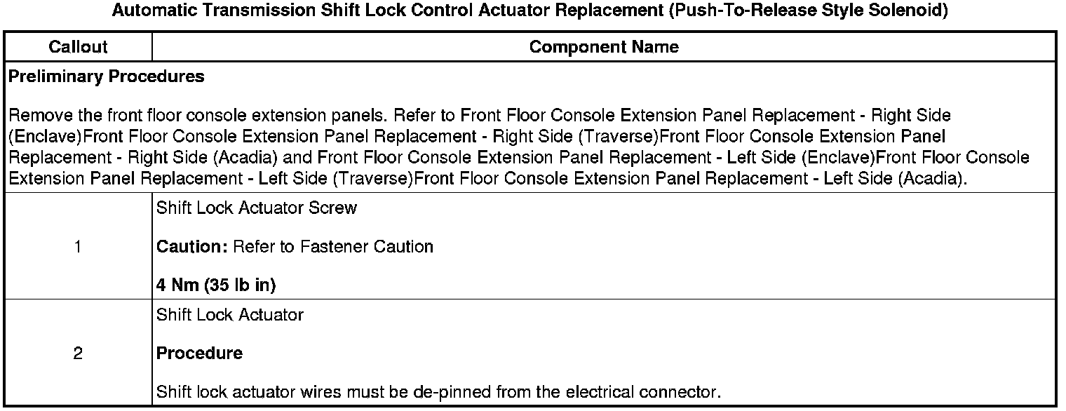Automatic Transmission Shift Lock Control Actuator Replacement (Push-To-Release Style Solenoid)