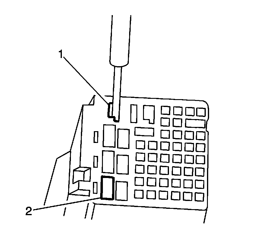 * Insert the connector terminal release tool J-38125-553 into the entry canal with the angled side of the tool facing the connector wall containing cavity 4 (2).
