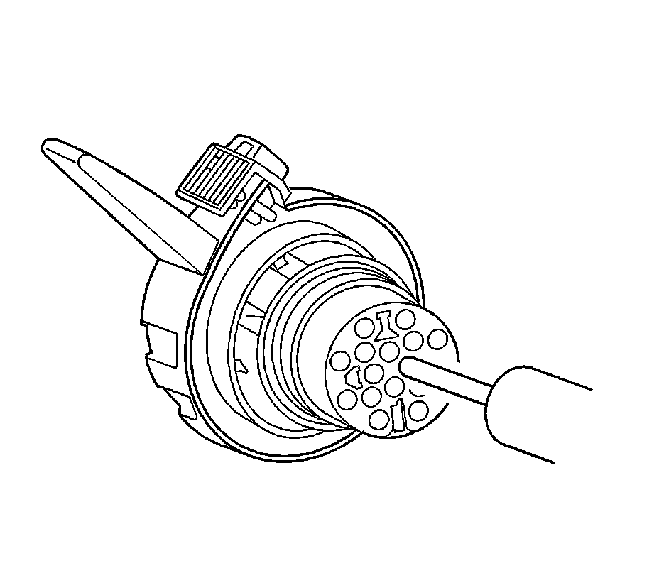 6. Repair the terminal by following the Repairing Connector Terminals (Terminated Lead Repair) Repairing Connector Terminals (Terminated Lead Repair)Repairing Connector Terminals (Terminal Repair) Repairing Connector Terminals (Terminal Repair) procedure.