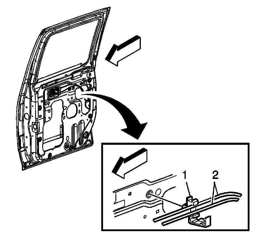 1. Remove the front door trim panel. Refer to Front Side Door Trim Panel Replacement Front Side Door Trim Panel Replacement.