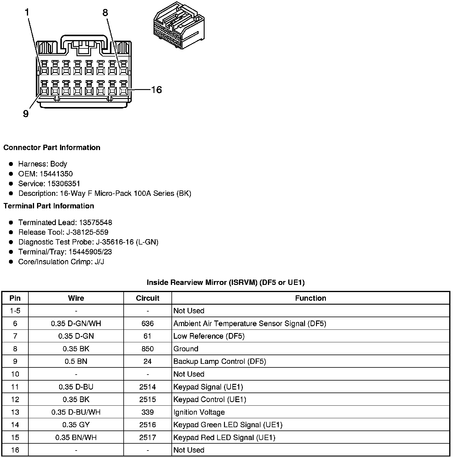 Inside Rearview Mirror (ISRVM) (DF5 or UE1)