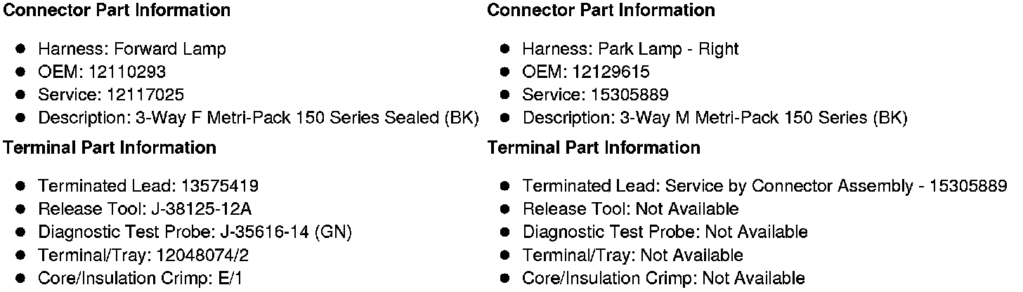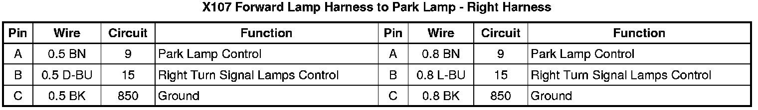 X107 Forward Lamp Harness to Park Lamp - Right Harness