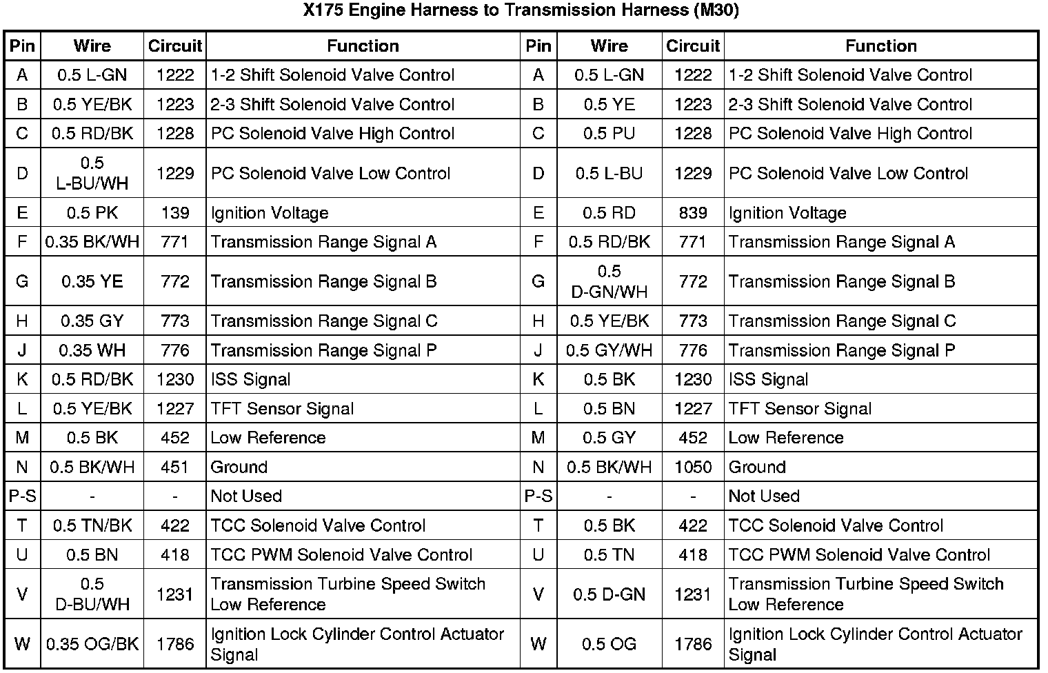 X175 Engine Harness to Transmission Harness (M30)