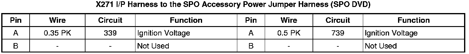 X271 I/P Harness to the SPO Accessory Power Jumper Harness (SPO DVD)