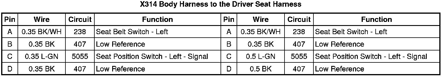 X314 Body Harness to the Driver Seat Harness