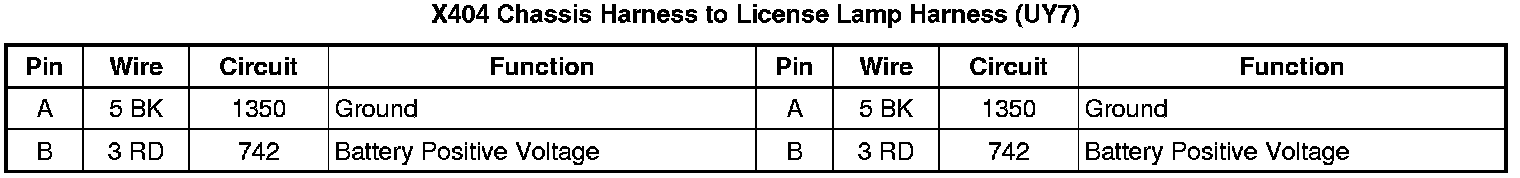 X404 Chassis Harness to License Lamp Harness (UY7)