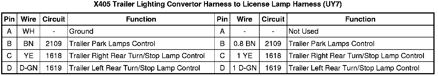 X405 Trailer Lighting Convertor Harness to License Lamp Harness (UY7)