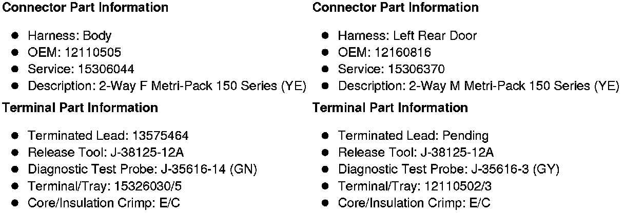 X701 Body Harness to the Left Rear Door Harness (Extended Cab)