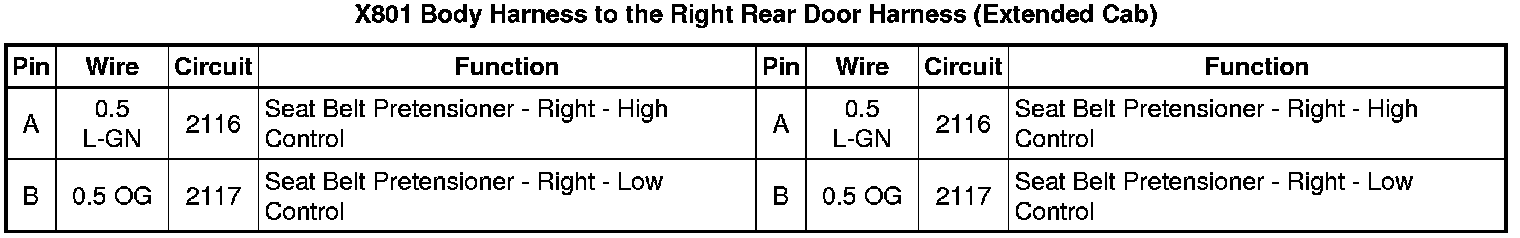 X801 Body Harness to the Right Rear Door Harness (Extended Cab)