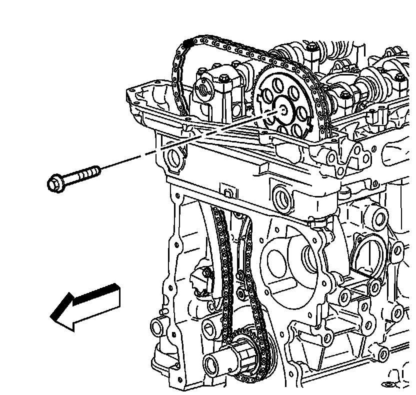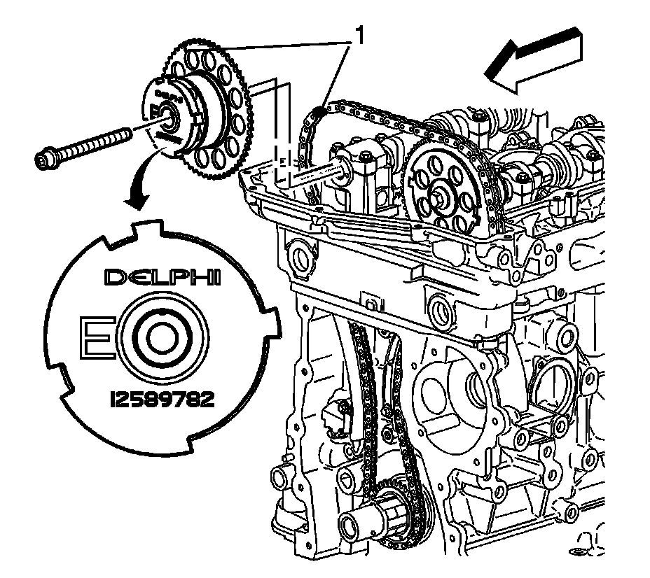Caution: The camshaft actuator must be fully advanced during installation. Engine damage may occur if the camshaft actuator is not fully advanced.
