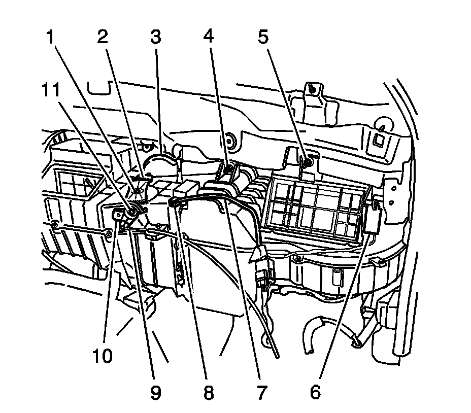 6. Install the mounting screws to the HVAC control assembly. Tighten the screws to 1.9 Nm (17 lb in).
