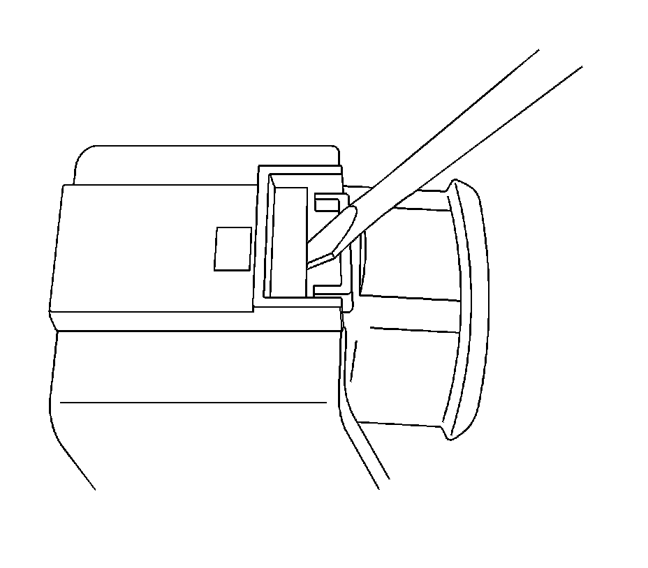 2. Push down the locking tab to release the connector. The small flat-bladed tool may need to be pushed down and angled back slightly to depress the locking tab. Pull on the connector body while releasing the locking tab to disconnect the connector.