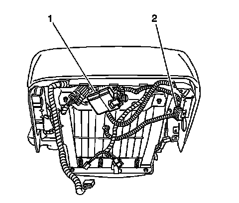 4. Remove the pressure switch (2) from the bottom of the passenger seat cushion frame.