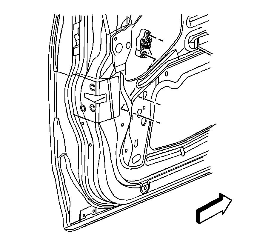 2. Remove the front door trim panel. Refer to Front Side Door Trim Panel Replacement Front Side Door Trim Panel Replacement.