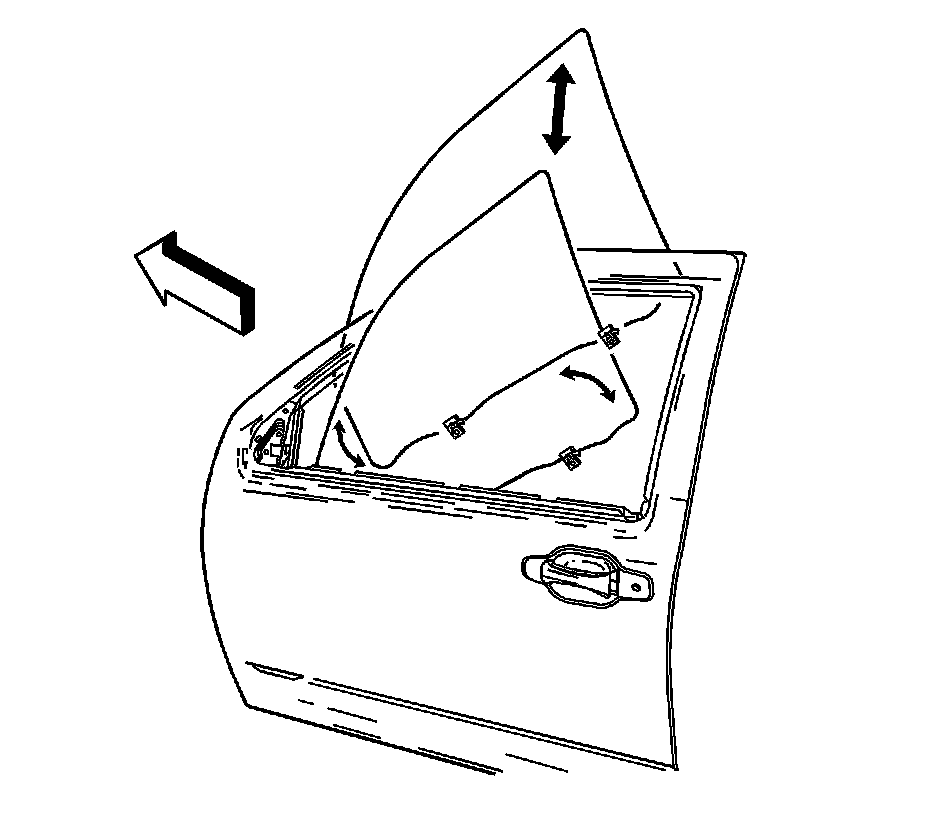 7. Rotate the rear of the window upwards, disengaging the window from the window run channel.