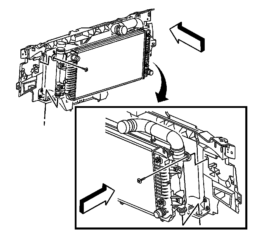 Always install a new set of insulators when replacing a radiator. Used insulators may be worn or too large for the new radiator. These conditions may cause the new radiator to be loose.