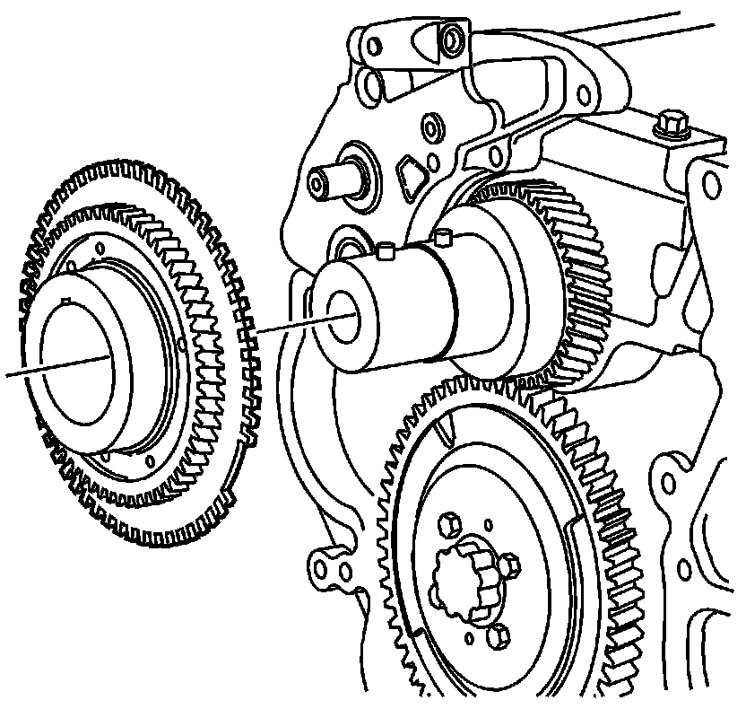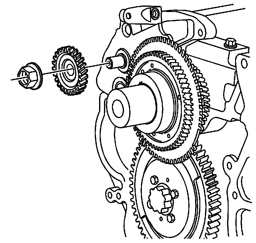 7. While holding the secondary oil pump shaft with a hex driver, install the oil pump driven gear nut. Tighten the oil pump driven gear nut to 100 Nm (74 lb ft).