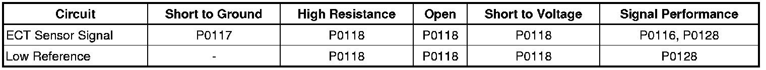 Measure and record the resistance of the ECT sensor at various ambient temperatures, then compare those measurements to the Temperature vs Resistance Table. Refer to Temperature Versus Resistance Temperature Versus Resistance.