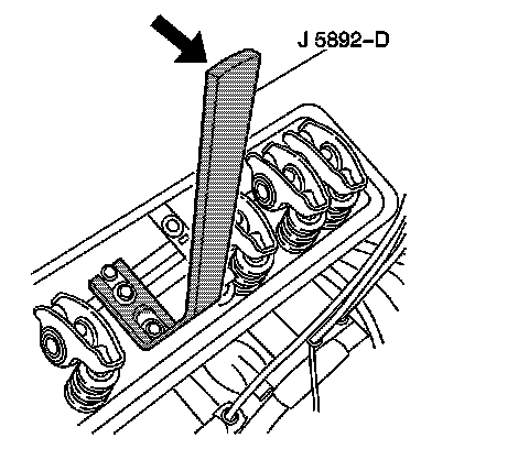 1. Hook the slotted end of J 5892-D under the washer on the rocker arm bolt.