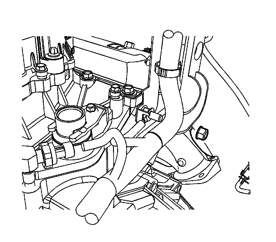1. Drain the cooling system. Refer to Cooling System Draining and Filling (Vac-N-Fill) Cooling System Draining and Filling (Vac-N-Fill)Cooling System Draining and Filling (Static Fill) Cooling System Draining and Filling (Static Fill)Cooling System Draining and Filling (Static Fill LGH, LML) Cooling System Draining and Filling (Static Fill).