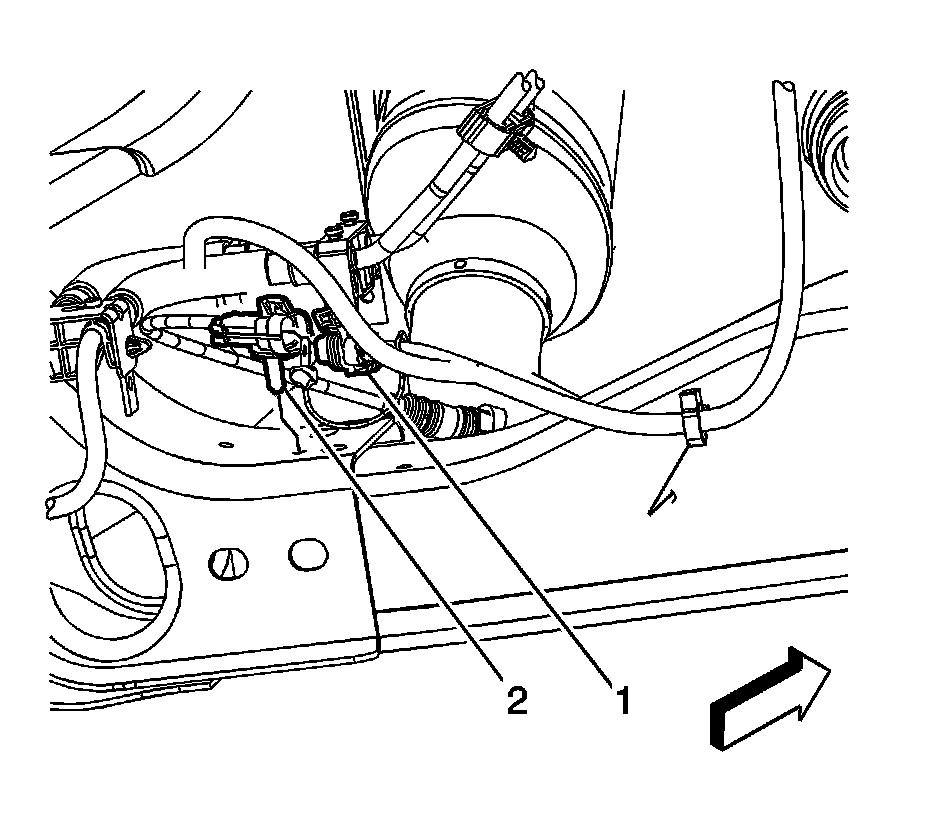 3. Install the HO2S pigtail electrical connector clip (2) to the frame.