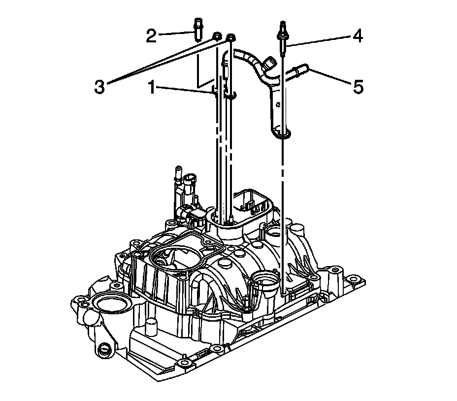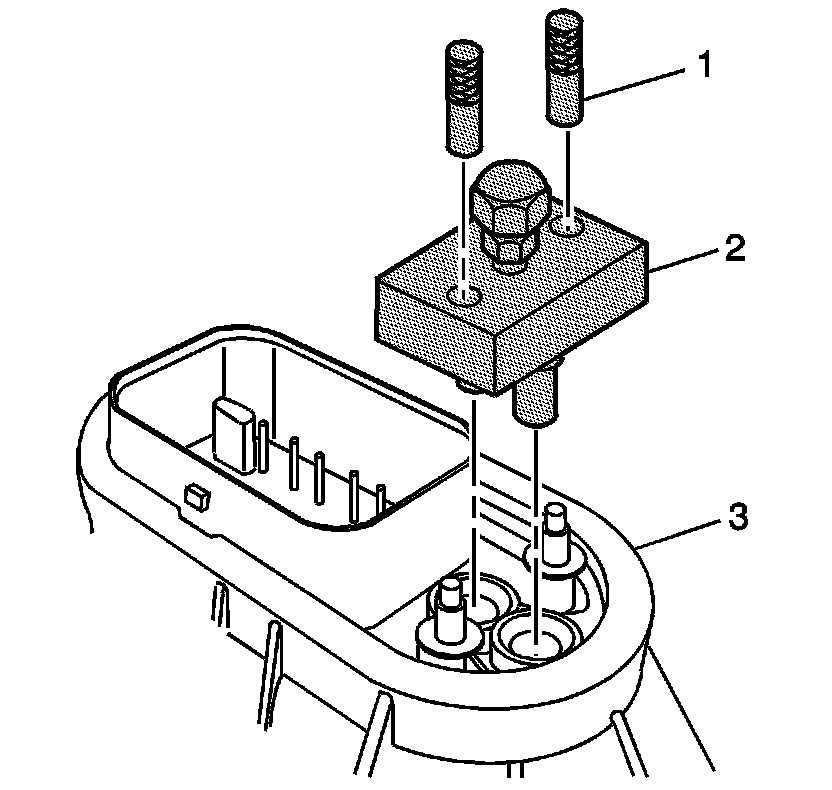 51. Apply threadlock GM P/N 12345382 (Canadian P/N 10953489) or equivalent, to the threads of the fuel feed pipe bracket stud (3).