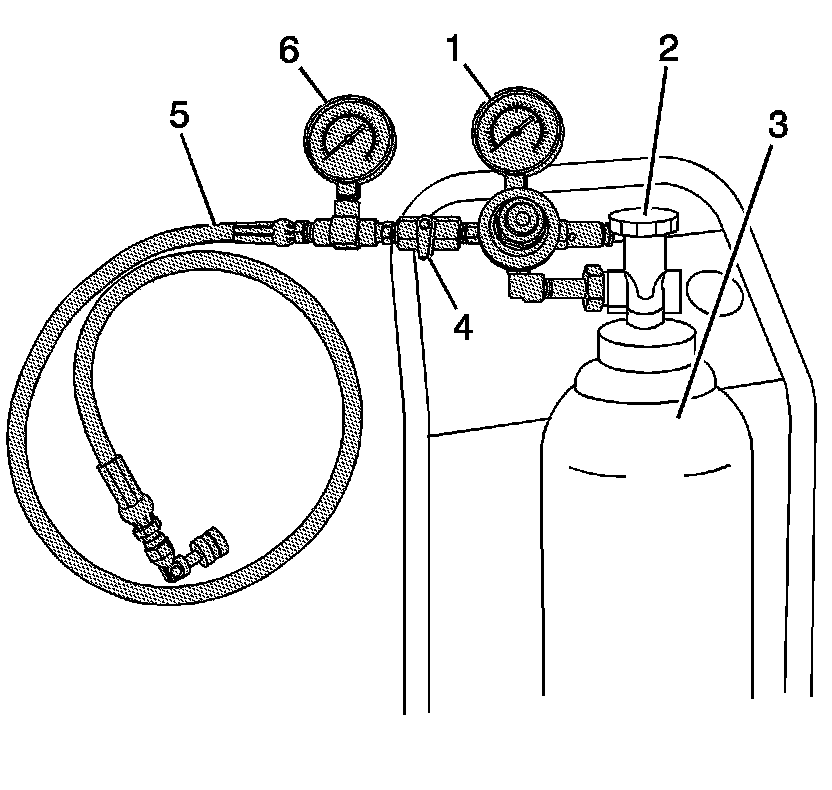 13. Obtain the J 41413 , close the valve (2) on the tank (3), and remove the regulator assembly.