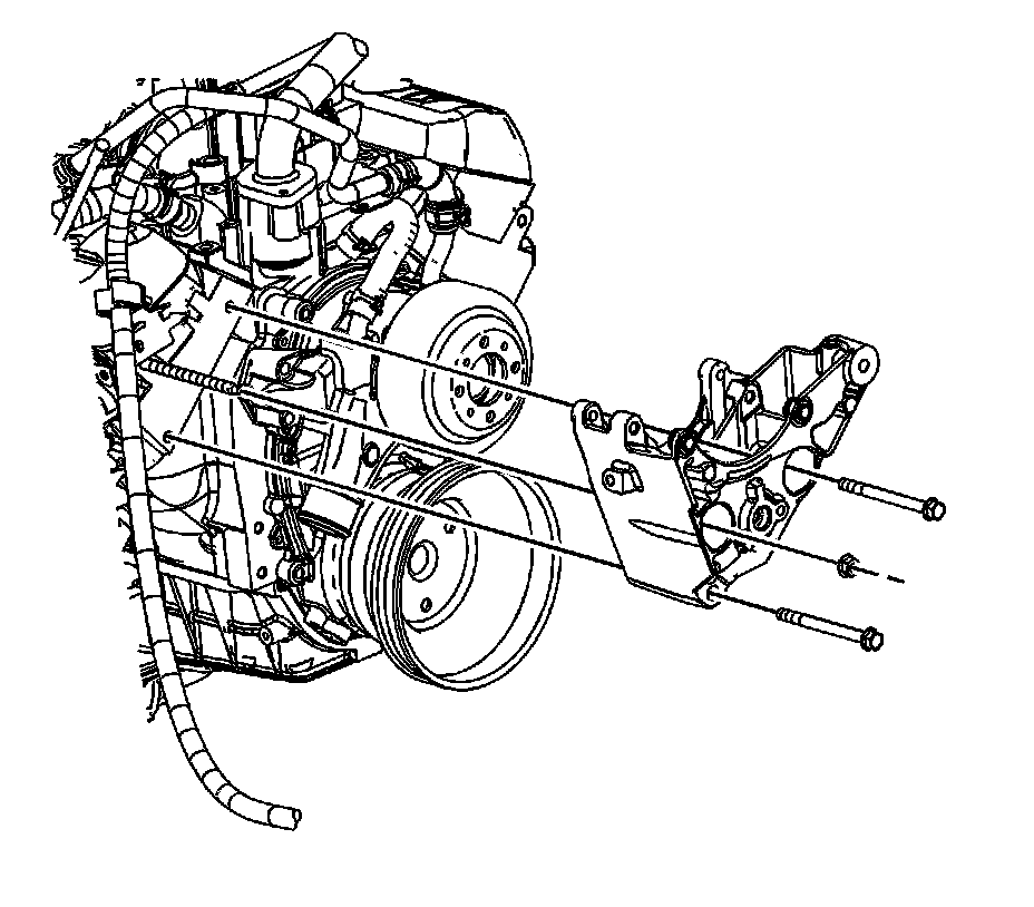 3. Remove the drive belt idler pulley. Refer to Drive Belt Idler Pulley Replacement - Right Side Drive Belt Idler Pulley Replacement - Right Side.