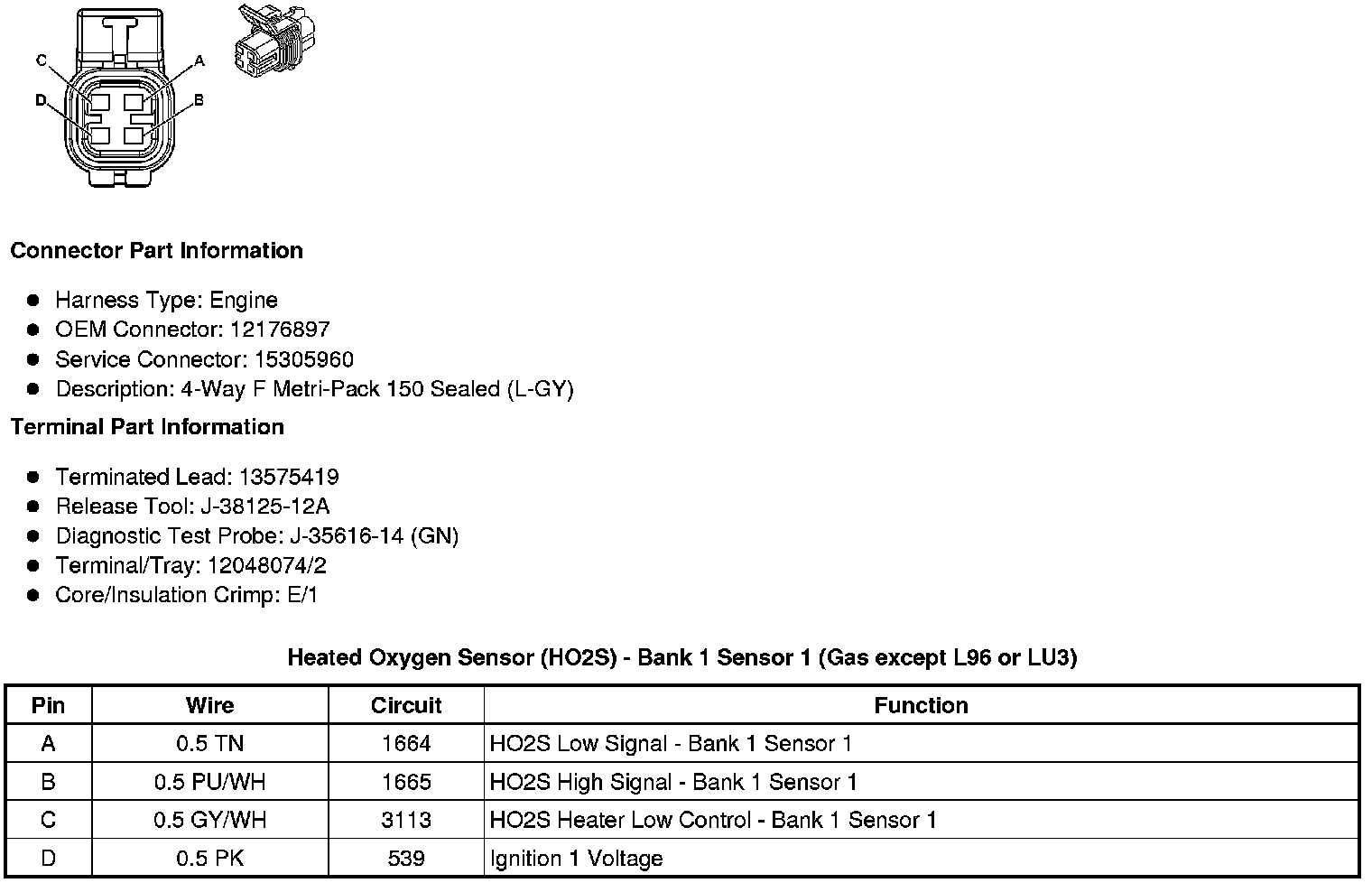 Heated Oxygen Sensor (HO2S) - Bank 1 Sensor 1 (Gas except L96 or LU3)